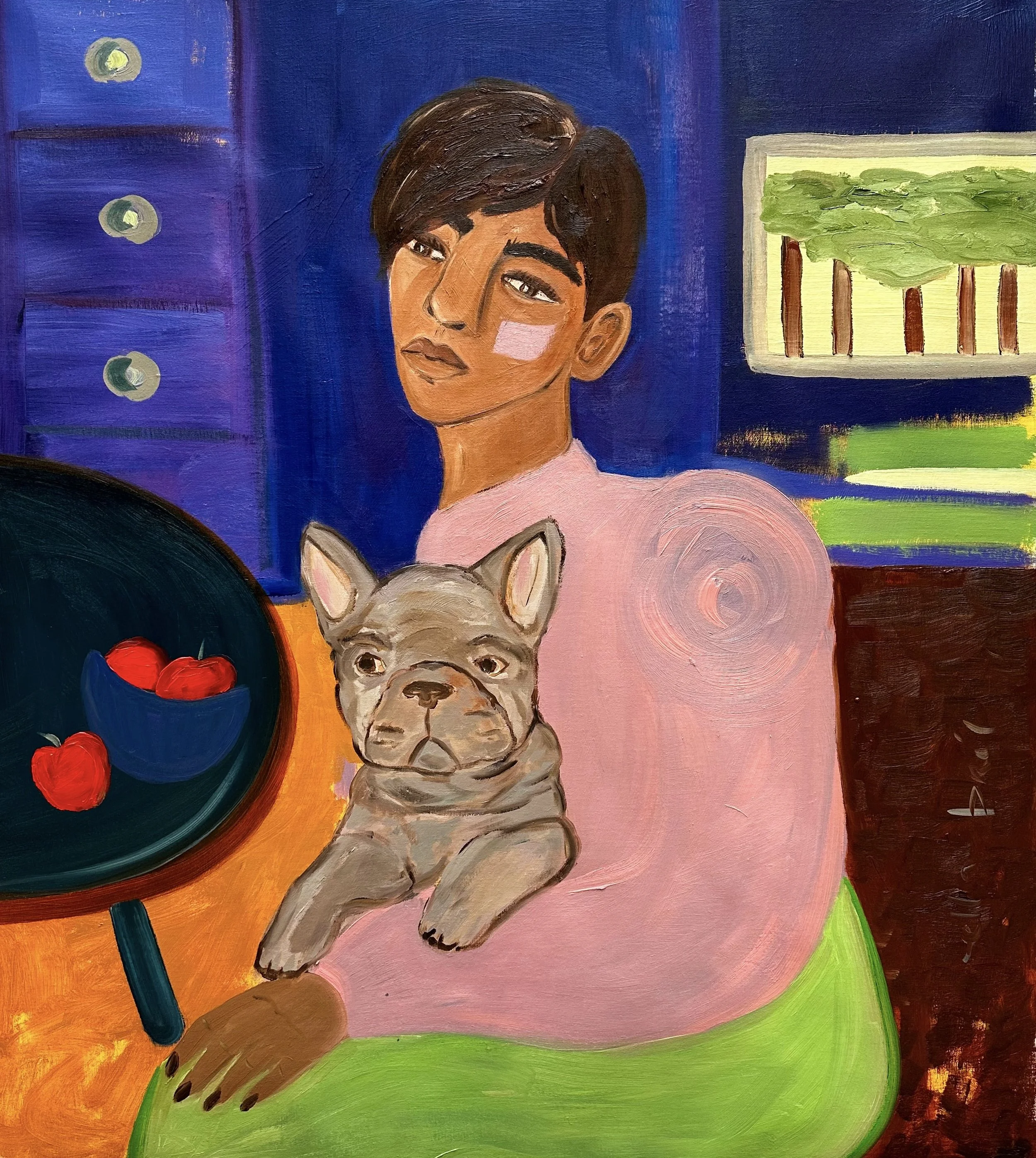 Polly and the french bull - 2023 - Oil on linen canvas - 100 x 110 cm > 3.350 euro
